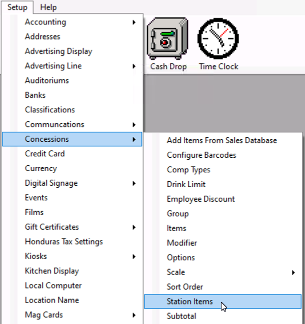 1. Navigate to Setup -> Concessions -> Station Items to add the new item to your selling stations.